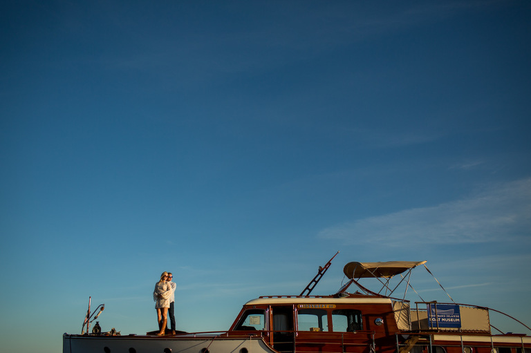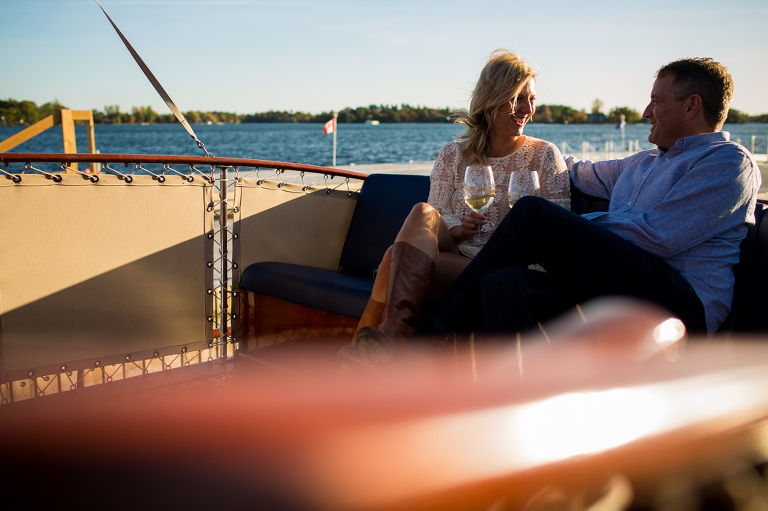 With some liquid courage under our belts, we stormed on and checked out some really cool little nooks and crannies around town before jumping aboard “Windswept III” courtesy of the Thousand Islands Boat Museum. Tanya and Tyler have an appreciation for the water so it seemed only fitting to get out on a boat and explore a little. We snapped some images on the boat, on the dock and we even let Tyler pretend to be the captain for a minute! But, with the Thousand Islands on the horizon we set sail for a pretty awesome secret spot our hosts had in mind. We arrived at our destination and got off the boat while the sun was falling like a ton of bricks towards the horizon. Perfect, my favourite light to play with! Luckily, at this point, T&T were used to my creative process and I was able to shuttle them around the island quickly to take advantage of this glorious light we had before it disappeared completely! With some killer shots in the bag, we got back on the boat and cruised back to the mainland through unusually calm Lake Ontario waters.