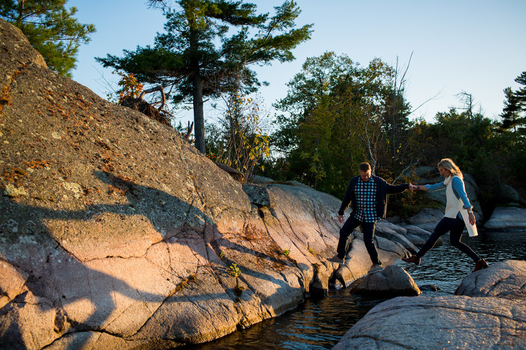 All good things start with beer, especially in the Thousand Islands at sunset. While that’s not entirely true, it can’t hurt right?! With that in mind, when I met up with Tanya and Tyler recently for their engagement session, that’s exactly what we did. It was an absolutely unreal fall afternoon, the sun was shining and the breeze was warm. With an afternoon of exploring Gananoque and the Thousand Islands on the docket, we started out with a couple bevies on the patio at the Socialist Pig, possibly the coolest place in town. Usually I start my engagement sessions by explaining that the first little bit is a warm up because it can feel awkward to be photographed and that it takes a little time before we get to the jaw dropping images. HA. The first picture in this post was literally the first one of the day. Daaaamn! I knew we were in for a good shoot.